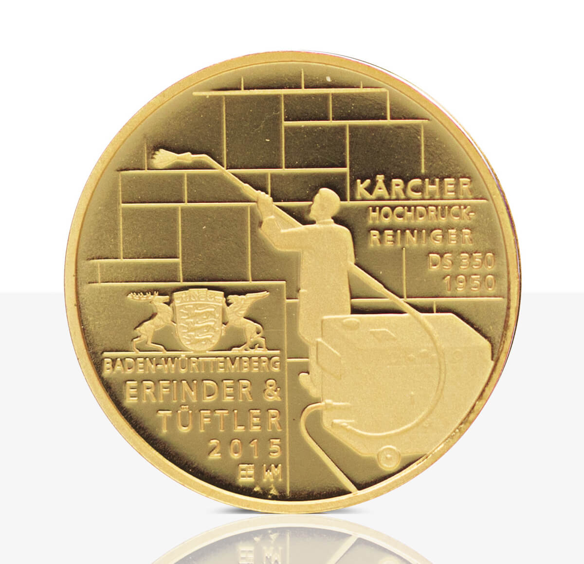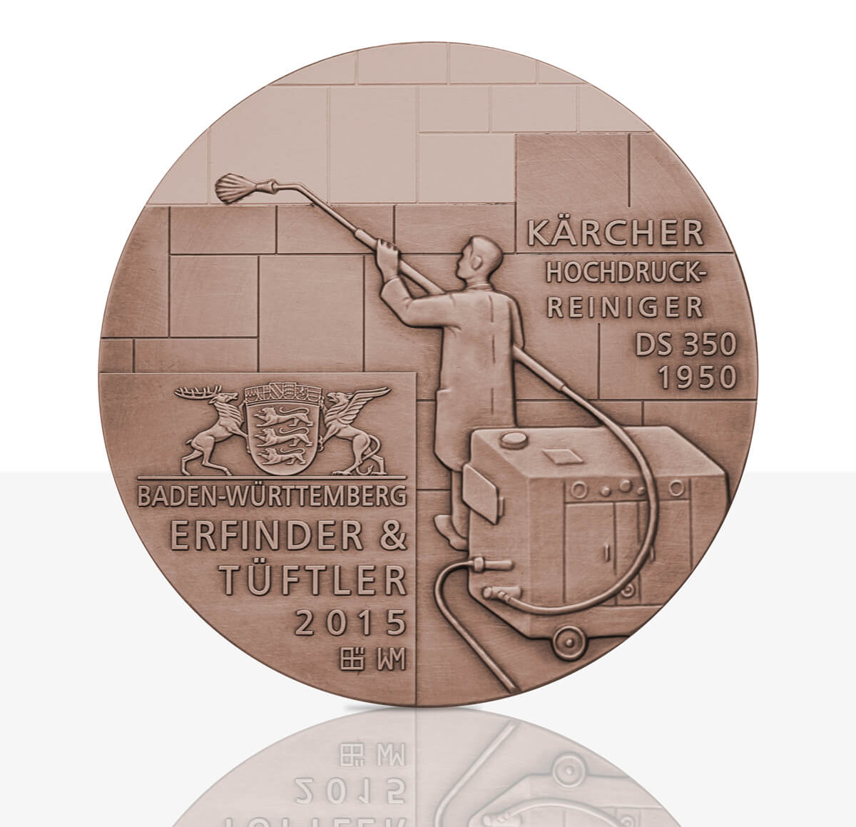 Durch die Kunstmedaille „Erfinder aus Baden-Württemberg“ aus dem Jahr 2015 wird die Bedeutung von Alfred Kärcher gewürdigt.